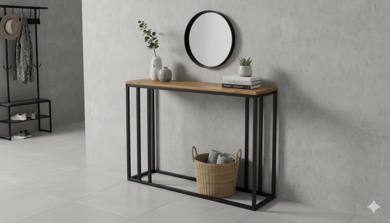 Konsola Mario do przedpokoju. Prosta, ale bardzo ciekawa forma. Konsola nadaje pomieszczeniu bardzo elegancki charakter i doskonale sprawdzi się do wyeksponowania dekoracji oraz do przechowywania ozdobnego kosza z kluczami lub innymi przydatnymi przedmiotami w przedpokoju.