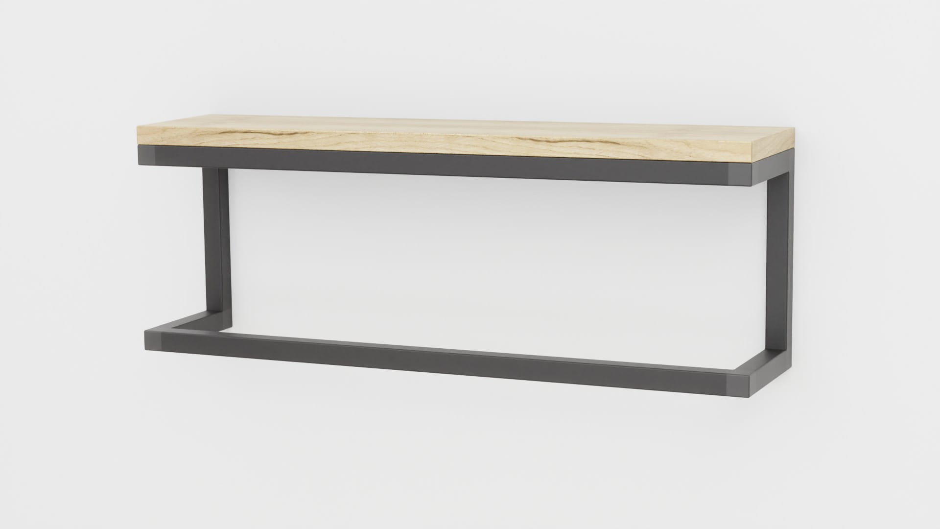 Wieszak wykonany z profili aluminiowych, anodowanych na kolor czarny. Profile łączone za pomocą specjalnych złączek z tworzywa wzmacnianego włóknem szklanym. Półki wykonane z płyty meblowej. Kolor płyty do wyboru z rozwijanej listy. Prosimy o dokonanie wyboru koloru w trakcie zakupu.